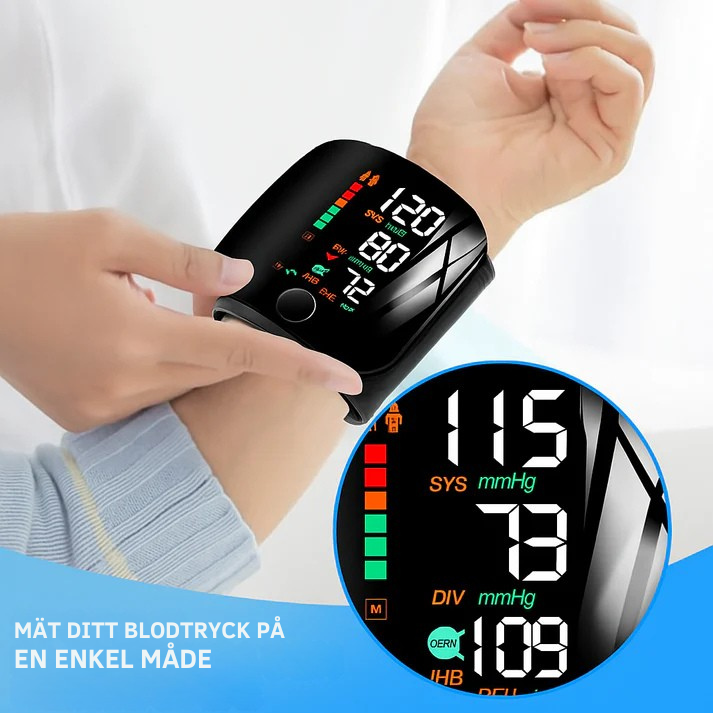 BlodtryckPro™ ger dig exakta mätningar av både blodtryck och puls på några sekunder – med en stor, lättläst LCD-skärm. Inga komplicerade knappar, ingen frustration. Bara enkel användning som ger dig data av samma kvalitet som på sjukhuset. Du kan äntligen följa din hälsa på ett säkert, pålitligt och stressfritt sätt.