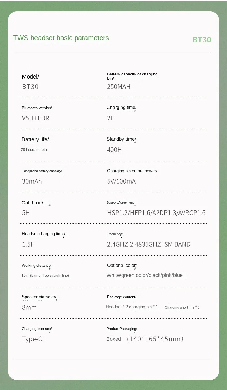 - Indikatorer: Dubbel digital LED-display (etui + öronsnäckor)